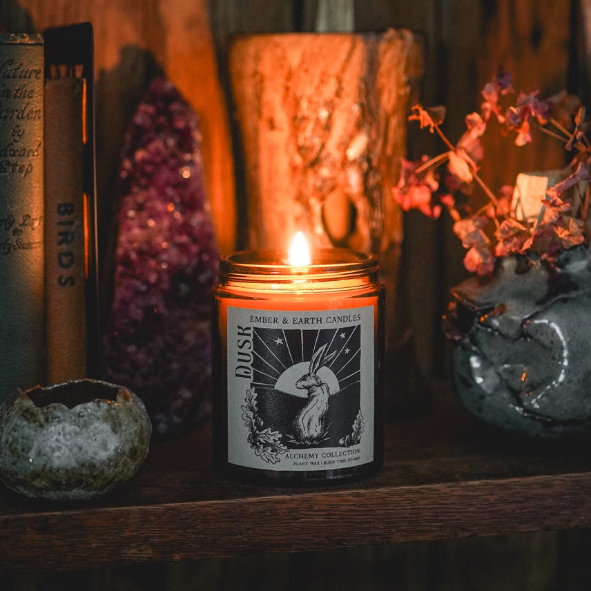 The Alchemy Collection is made in small batches, to ensure the best possible scent throw, and hand poured in to 120 ml and180 ml apothecary amber jars.