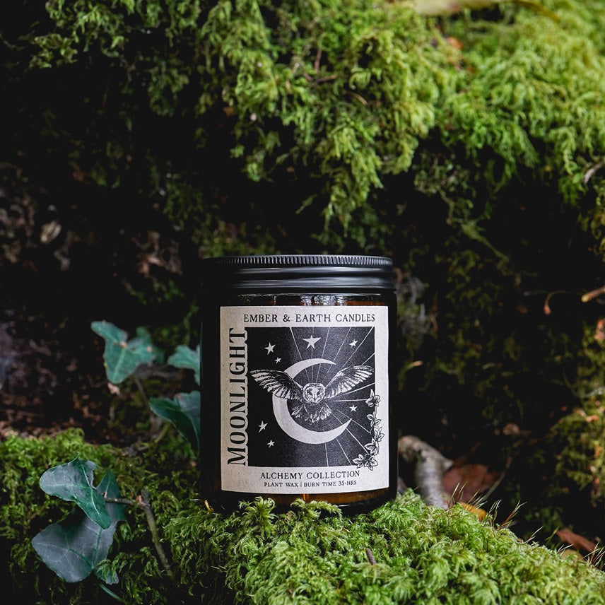 The Alchemy Collection is made in small batches, to ensure the best possible scent throw, and hand poured in to 120 ml and180 ml apothecary amber jars.