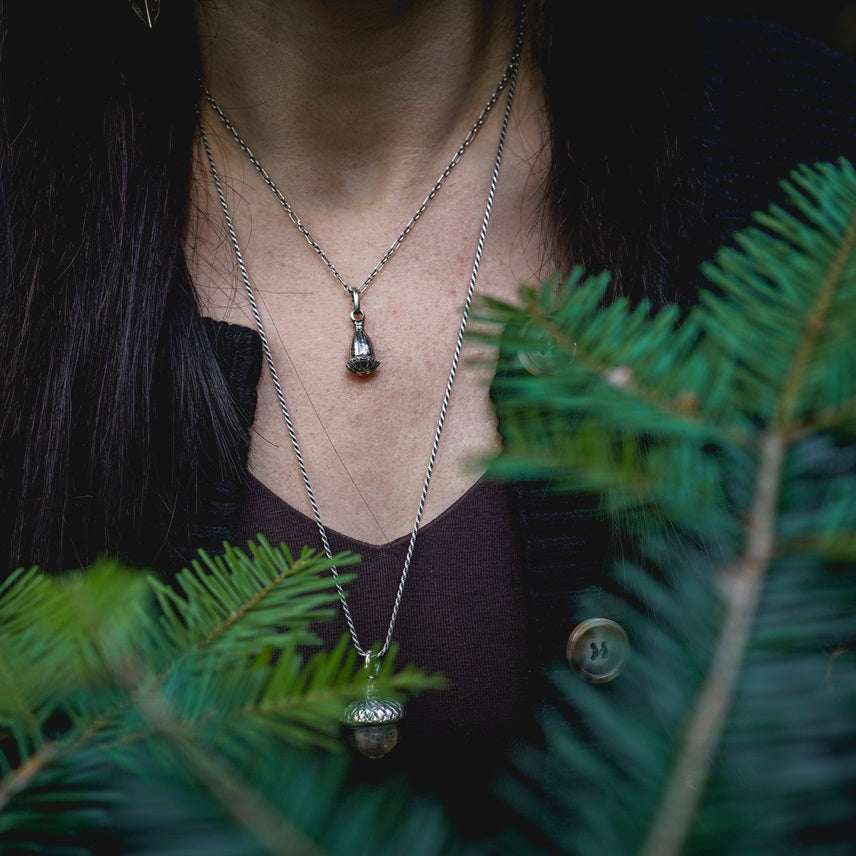 Delicately cast in sterling silver from a real corn poppy pod found in my garden, this pendant holds the quiet of nature’s fleeting beauty - captured and preserved in precious metal.