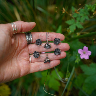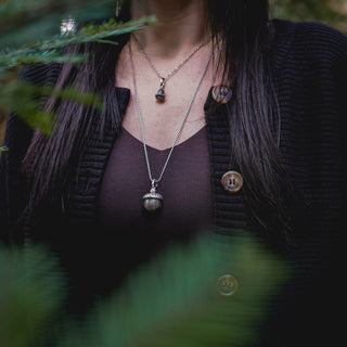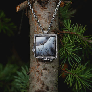 A collection of nature inspired sterling silver pendants and necklaces.